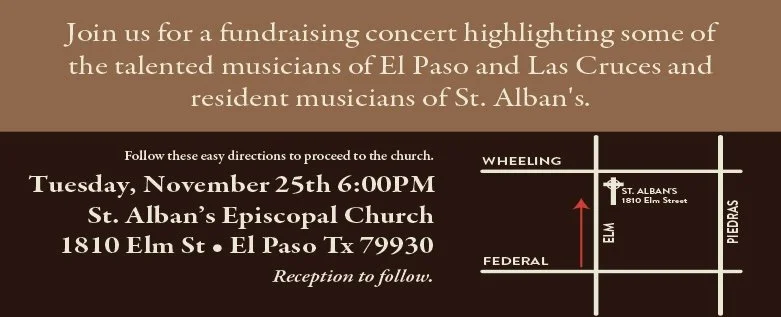 A fundraising concert highlighting some of the talented musicians of El Paso, Las Cruces and resident musicians of St. Alban. Reminding you proceeds will benefit the St. Alban’s music program.